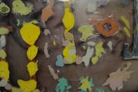 Clay, Play Doh, Attached with Rabbit Skin Glue to Wooden Framed Image, 2025